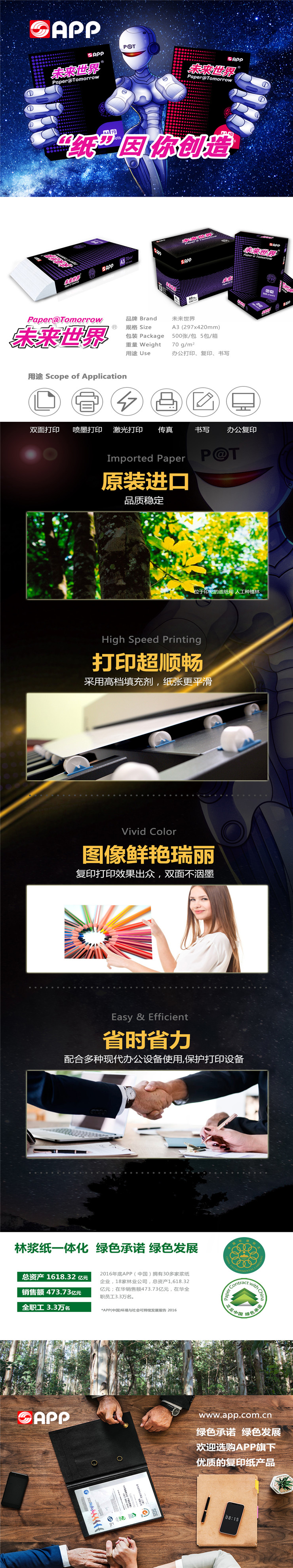 未来世界 A4 80g 纯白 5包/箱 复印纸